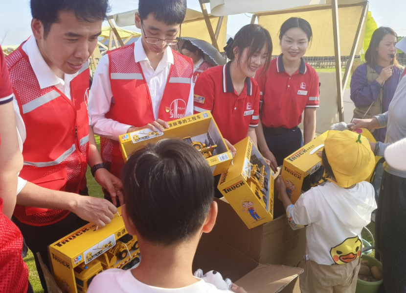 61份玩具,牛奶、水果若干、蛋糕