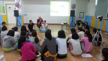 2013年4月30日,英国自闭症舞蹈治疗师Sara Owen在中心为老师们开展为期一天的舞蹈工作坊,中心全体老师学习舞蹈动作治疗方法。Sara老师在成人和儿童(特别是自闭症儿童)领域教学和精神康复有着丰富的工作经验。工作坊中Sara老师阶梯式的讲解,将理论与实务相结合,展示并让老师们亲身体验了舞蹈治疗的形式以及带来的益处,老师们收获颇多。让我们期待Sara老师的再次亲临,指导老师们运用舞蹈治疗方法更好的帮助我们的孩子!感谢Sara Owen、博德文先生、周宇老师的到来,与中心老师们一起为孩子们的发展努力着!